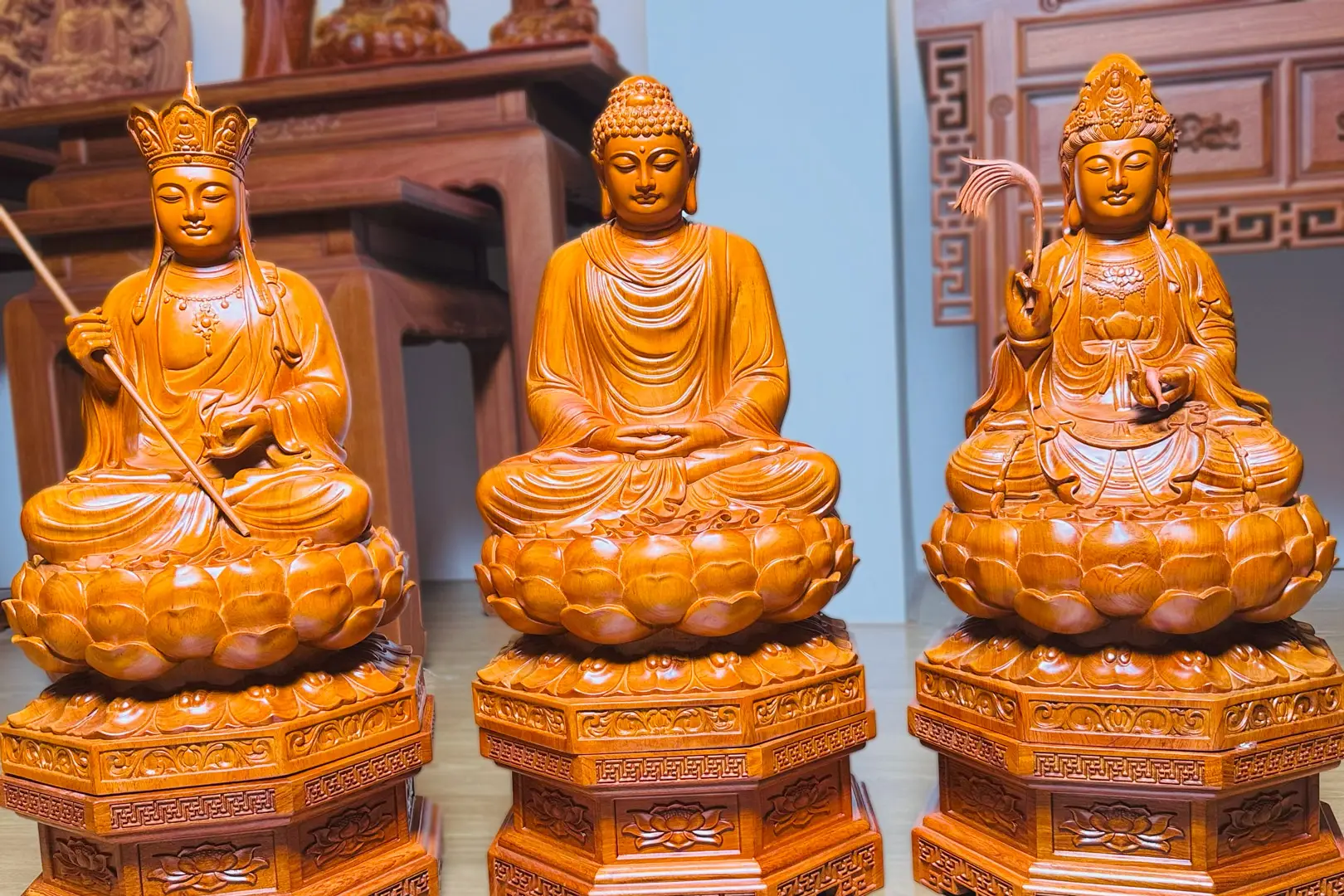 Chúng tôi nhận đục bộ Tượng Ta Bà Tam Thánh theo yêu cầu, tuỳ biến theo nhu cầu cá nhân riêng từng khách hàng.